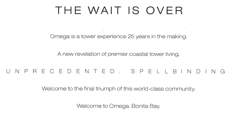 With pricing from $2,150,000 to $6,000,000+, OMEGA BONITA BAY is for the discerning buyer who knows luxury. Top-of-the-line finishes, incredible, country-club-like amenities, and awe-inspiring views – get ready because….